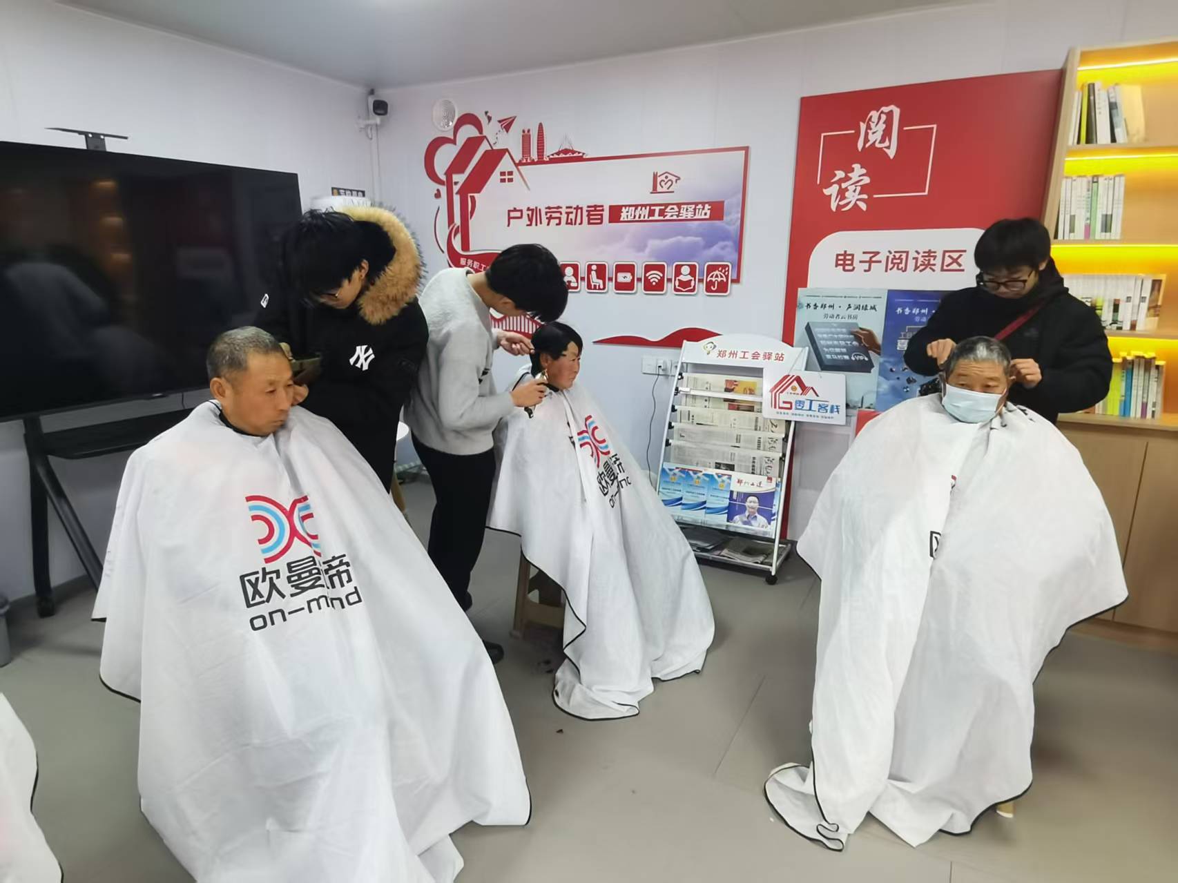 元旦将至,工会送暖。为切实服务户外劳动者,12月26日,总工会在吾悦广场郑州工会驿站开展“迎元旦·送温暖”爱心义剪活动,专门为外卖配送员、环卫工人等户外劳动者提供免费理发服务。